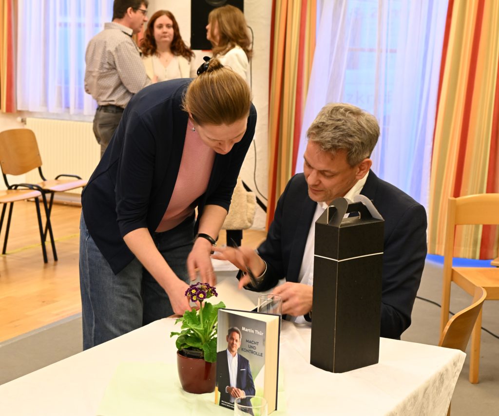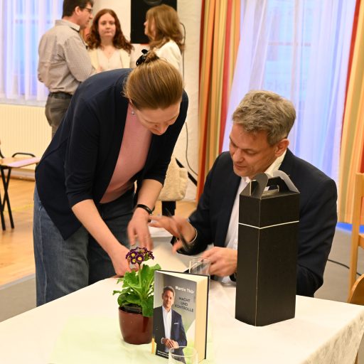 Anstelle einer Lesung stellte sich der ORF-Journalist direkt den Fragen unserer Kollegin Martina Bauer. Souverän, sympathisch und geduldig gab er Einblick in seinen Werdegang, den redaktionellen Alltag und die Kriterien, die Einfluss auf die tägliche Berichterstattung haben. Wie spürt man lohnende Themen auf? Was braucht es für eine wasserdichte Recherche? Wie unabhängig ist der öffentlich-rechtliche Rundfunk, und wie können objektive, qualitätsvolle Medien in Zeiten von Social-Media-Meinungsblasen überleben? Dabei betonte Thür die Wichtigkeit von Medienkompetenz seitens der Nachrichtenkonsumenten, also die Fähigkeit, redaktionelle Qualität von bloßer Meinung zu unterscheiden und angesichts knapper werdenden Ressourcen diese Qualität auch zu honorieren.